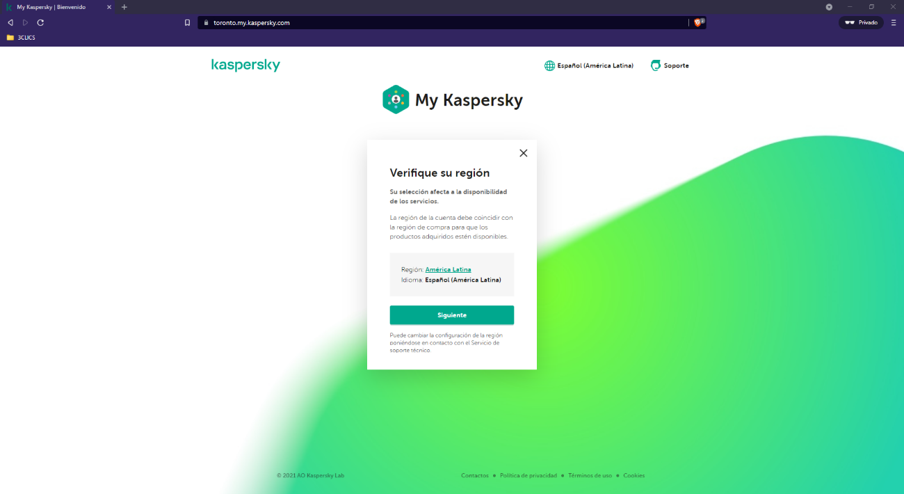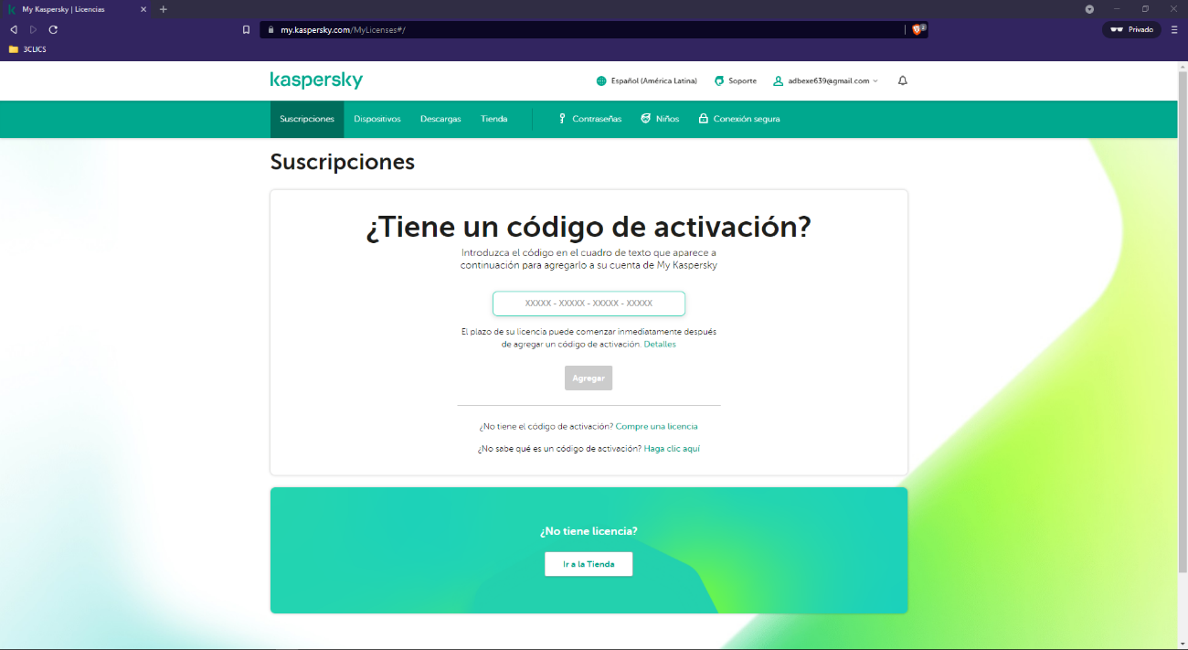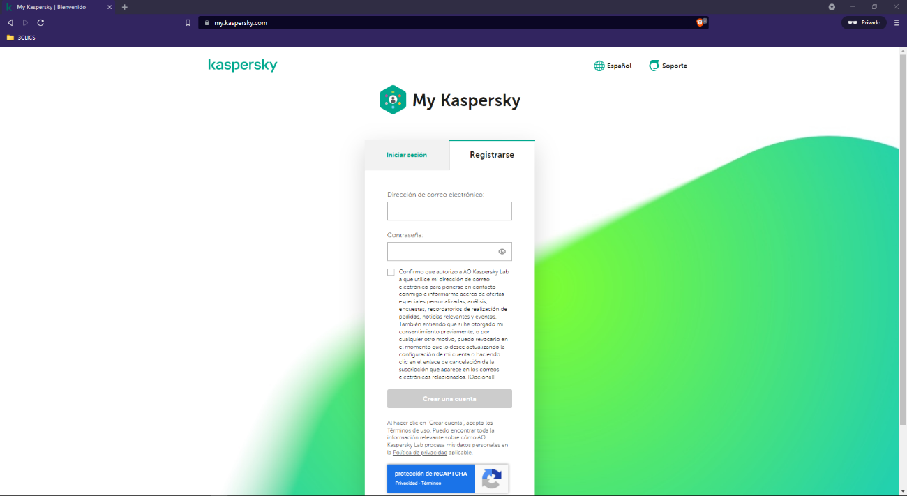 Primero debemos acceder al portal de cuentas de Kaspersky desde el siguiente enlace: https://my.kaspersky.com/