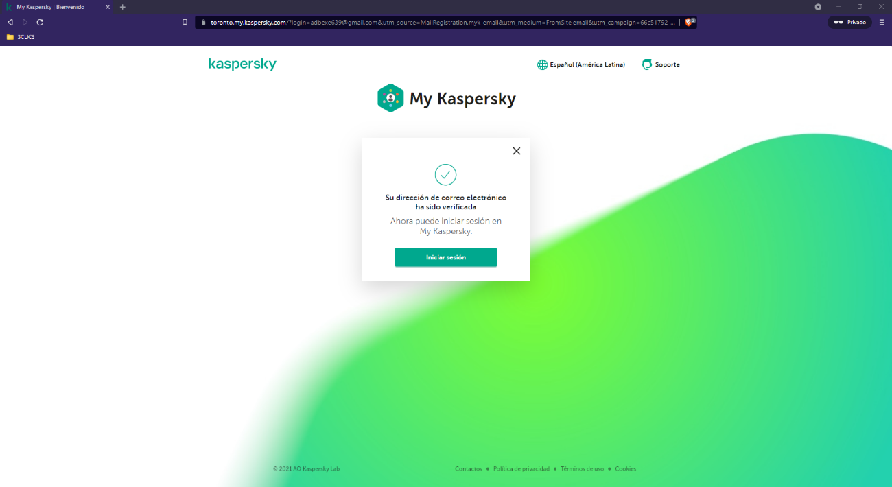 Primero debemos acceder al portal de cuentas de Kaspersky desde el siguiente enlace: https://my.kaspersky.com/
